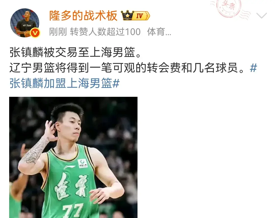 在广东宏远男篮的徐昕申请交易之后,朱芳雨一度希望用徐昕作为交易主体,向辽宁男篮交易张镇麟,但这笔交易遭到了辽宁男篮的明确拒绝。原以为辽宁男篮会成功挽留张镇麟,但伴随着今天外界报道张镇麟转会上海久事,双方最终还是就此分道扬镳。